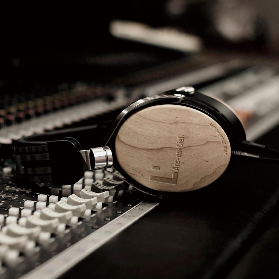 尾瀬国立公園で使用されていた木道の廃材をヘッドホンのハウジングに再利用しました。